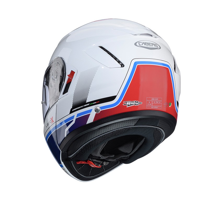LEVO X è il casco apribile di Caberg realizzato per il mototurista più esigente con soluzioni tecniche all'avanguardia e design innovativo. La calotta esterna è realizzata in fibre composite oppure, nella versione LEVO X CARBON, interamente in fibra di carbonio.Le due misure di calotta esterna permettono una perfetta proporzione tra il volume del casco e la taglia del motociclista. LEVO X si caratterizza per la doppia omologazione P/J avendo superato sia i test previsti dalla normativa ECE 22.06 per i caschi integrali (P) che quelli in configurazione jet (J), con mentoniera aperta. Il sistema di ventilazione, costituito da due presa d'aria frontali e due estrattori posteriori, offre un comfort ottimale anche nelle condizioni più estreme attraverso i canali presenti nella calotta interna. Tra le peculiarità  esclusive di LEVO X rientra l'ampia visiera che permette al motociclista di contare su un campo di visione tra i più estesi della sua categoria (definito panoramic ultra-wide visor), garantendo un'apertura frontale della visuale pari a 82°. LEVO X è inoltre equipaggiato di serie con la lente antiappannante Pinlock Max Vision ed è dotato di visiera parasole integrata, Double Visor Tech, facile da manovrare anche indossando guanti. Gli interni, completamente estraibili e lavabili, sono realizzati con i migliori tessuti ad alta traspirazione e trattati Sanitized. Le guance hanno un profilo che consente di indossare occhiali con estrema facilità .LEVO X è predisposto per alloggiare il comunicatore Caberg PRO SPEAK EVO ed i principali comunicatori universali presenti sul mercato. per garantire la massima sicurezza LEVO X ha superato tutte le prove richieste dalla normativa ECE 22.06 anche con il comunicatore montato all'interno del casco.CARATTERISTICHE-Calotta:FIBERGLASS-Interno:Completamente estraibile e lavabile realizzato con tessuti ipoallergenici e traspiranti.-Ventilazione:Due prese d'aria frontali e due estrattori d'aria posteriori regolabili facilmente anche indossando guanti.-Visiere: DVT (Double Visor Tech) Trasparente ultra-wide antigraffio con Pinlock Max Vision di serie-Visiera parasole antigraffio integrata-Sistema di ritenzione:-Fibbia a regolazione micrometrica-Omologazione:ECE 22.06 P/J-Peso:1550 +/- 50 gr.-LEVO X è prodotto in Italia.