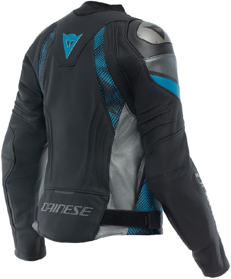 Pensata per tutti i motociclisti amanti della guida sportiva su strada, Avro 5 è la giacca da moto Dainese ispirata alle tute dei piloti della MotoGP.Costruita in pregiata pelle bovina tutu, presenta inserti elasticizzati in tessuto S1 e Microelastic 2.0, caratteristiche che garantiscono ottima vestibilità , comodità e libertà di movimento durante la guida.Il comfort è dato anche dalla nuova costruzione del colletto veloce racing neck, un sistema di derivazione MotoGP che riduce al massimo la pressione sul collo.Per garantire la massima protezione del motociclista anche alle alte velocità , Avro 5 è dotata delle stesse soluzioni tecniche delle tute Dainese, presentando protettori certificati su spalle e gomiti nonchè placche di alluminio removibili sulle spalle. La giacca è predisposta all'inserimento del paraschiena G1 e G2.Connubio perfetto tra protezione e comfort, Avro 5 è estremamente versatile grazie alla fodera termica utilizzabile separatamente, al tessuto mesh traspirante e alle prese d'aria sui fianchi, che la rendono ottimale per un uso in ogni stagione.Comodità ed ergonomia sono ottimizzate dalla possibilità di regolazione della giacca in vita e dal sistema di connessione giacca-pantaloni, che impedisce le infiltrazioni d'aria e assicura la corretta vestibilità di entrambi i pezzi in ogni situazione.CARATTERISTICHE-1 tasca interna impermeabile-2 tasche esterne-Capo da moto certificato secondo la norma EN 17092 AA-Tasca per doppio protettore toracico-Tasca per paraschiena G1, G2-Inserti riflettenti-Inserti elasticizzati-Costruzione del collo elastica-Sistema di accoppiamento tra giacca e pantaloni-Microelastic 2.0-Collo Racing Veloce-Regolazione del girovita-Microfibra-Tessuto bielasticizzato S1-Pelle bovina Tutu-Spallina co-iniettata con inserto in alluminio-Protettori compositi certificati secondo la norma EN 1621.1 sui gomiti-Protettori compositi rimovibili certificati secondo la norma EN 1621.1 sulle spalle-Placca in alluminio sostituibile sulle spalle (1876165 kit in alluminio spalla sport)-Inserti in tessuto 3D bubble-Prese d'aria sui lati-Fodera in mesh traspirante-Rivestimento termico rimovibile - può essere utilizzato separatamente