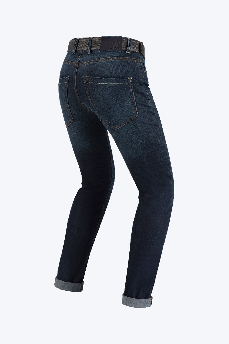 CARATTERISTICHE-Denim 100% cotone elevata resistenza-Rinforzi in tessuto 100% TWARON® balistico foderato internamente-Foderato tessuto COOLMAX®-Protezioni ginocchia omologate CE 1621-1, regolabili e rimovibili-Predisposizione imbottiture "Zero-Shock" su fianchi, rimovibili-Testato secondo la normativa EN 13595-2 - EN13595-4-Cintura vintage doppio anello compresa-Risvolto fondo con cucitura cimosata-Vestibilità aderente, stile Cafè Racer, nessuna cucitura esterna